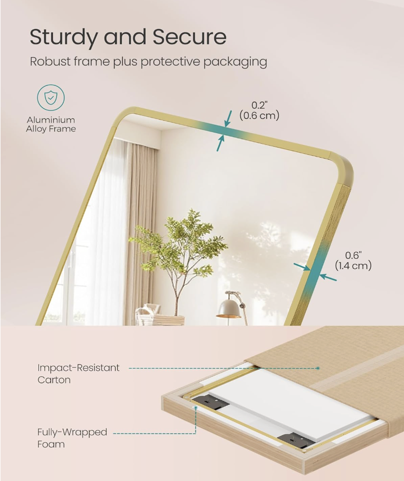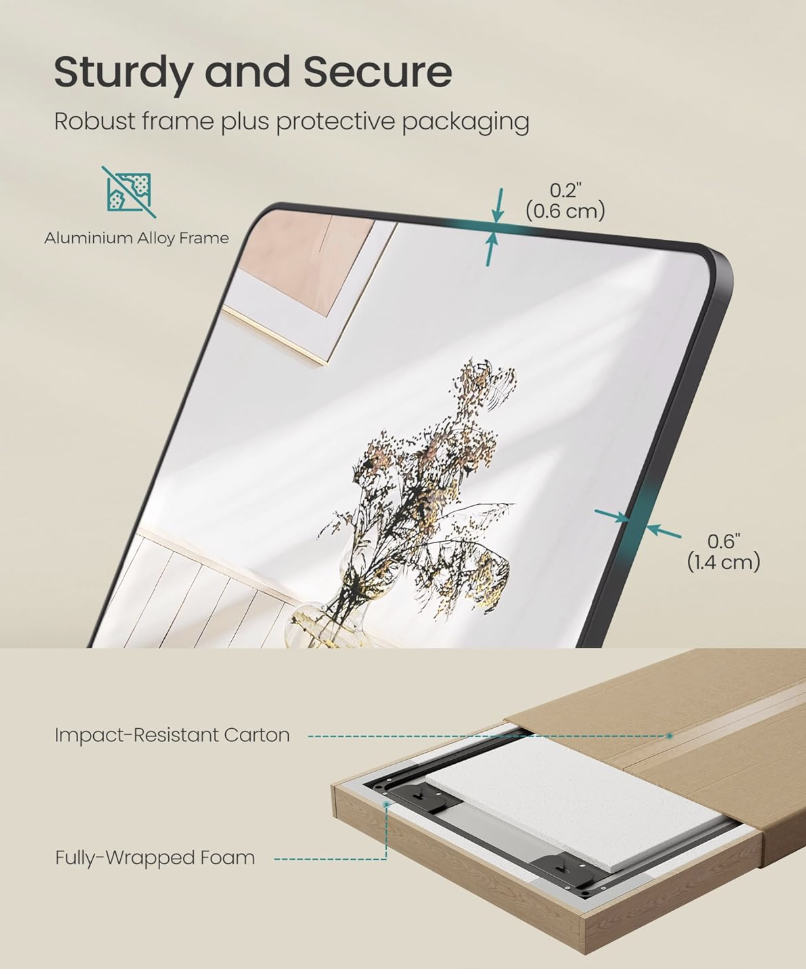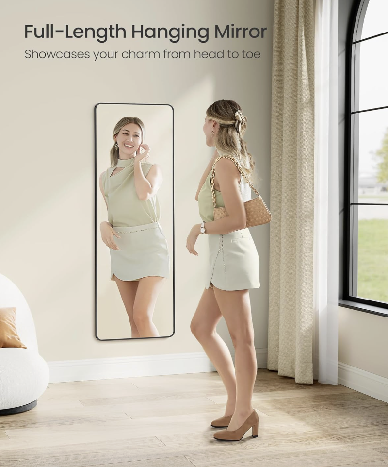- 【VERSATILE MEETS STYLISH】This elegant rectangular full-body mirror is more than just functional. It’s a chic accent piece for your bedroom, hallway, living room, or home gym, effortlessly enhancing your space with its refined design