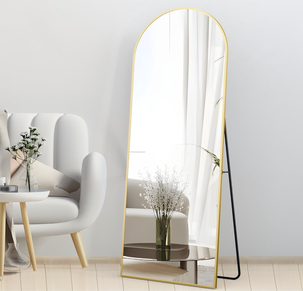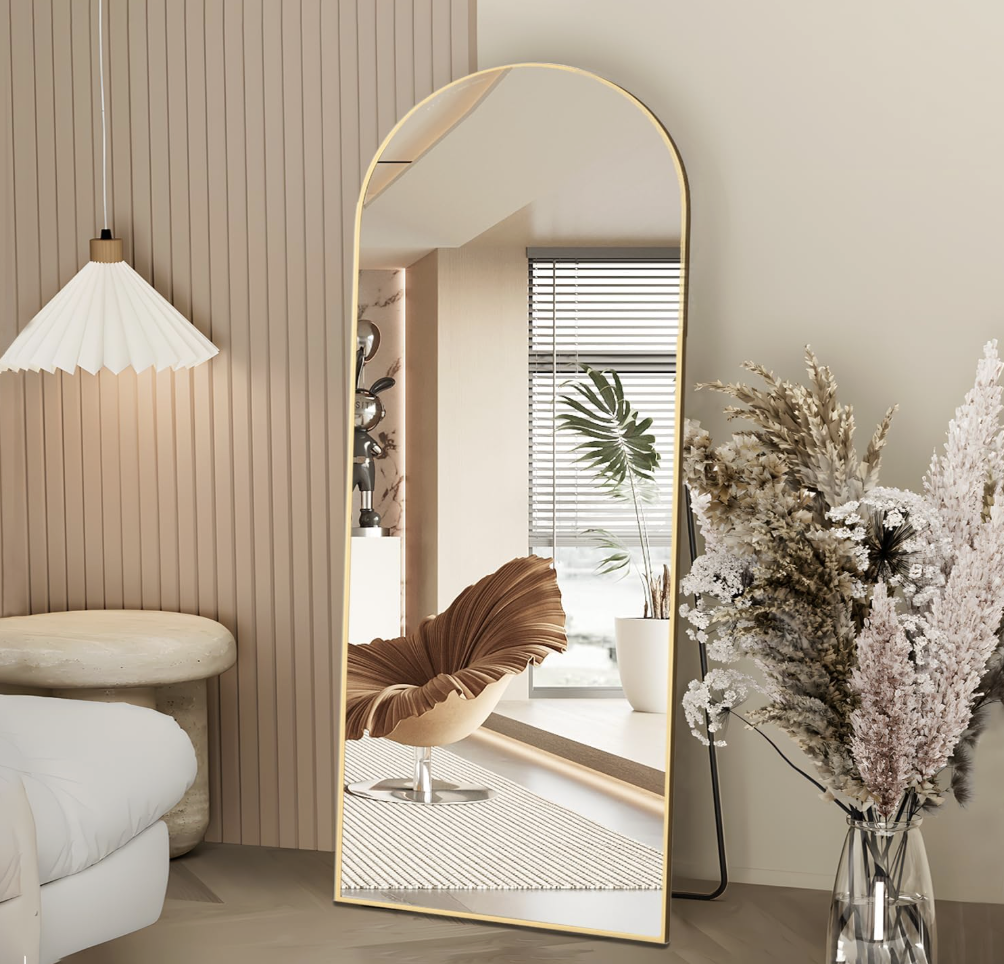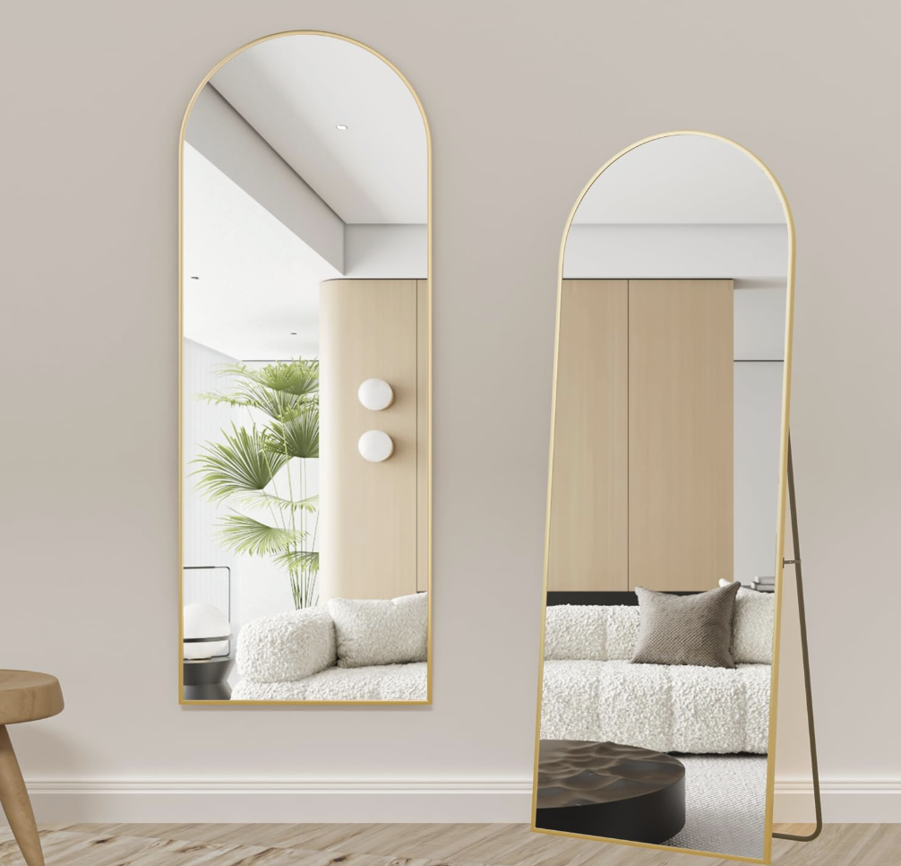 - FULL SIZE MIRROR: The gold 162x53cm arched full length mirror can provide enough light to the room. Contemporary full length standing mirror can not only facilitate you to check your full body in a single glance, but also a perfect decoration for bedroom, living room, hallway, entry, dressing room.